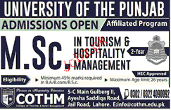 University of the Punjab Admission in MSc in Lahore. Read newspaper ad for exact details.