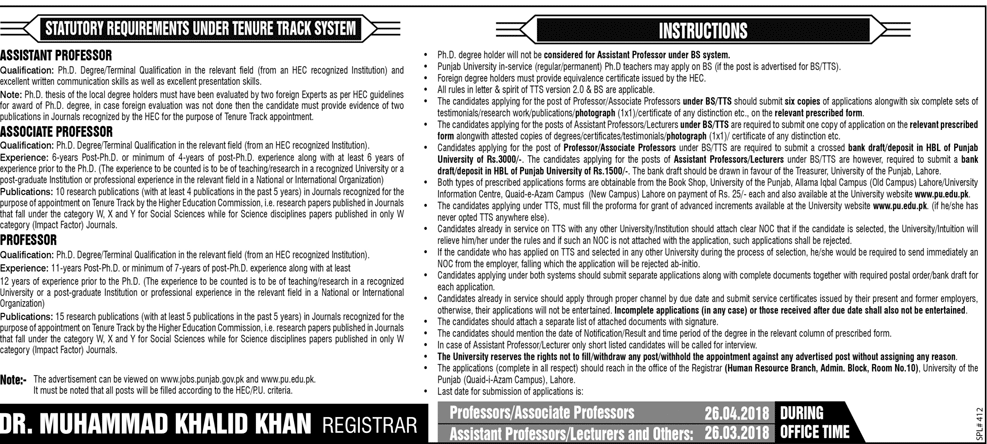 Latest University Of The Punjab PU Teaching Posts Lahore 2025