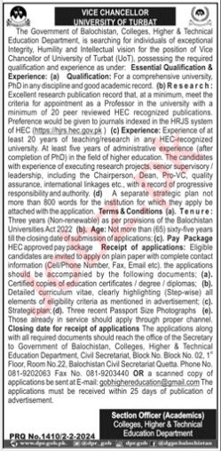 Apply at University of Turbat latest Government jobs in Education and departments before closing date which is around February 29, 2024 or as per closing date in newspaper ad. Read complete ad online to know how to apply on latest University of Turbat job opportunities.