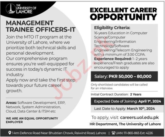 Latest Private jobs in The University of Lahore UOL in Education and others can be applied till 10 March 2024 or as per closing date in newspaper ad. Read complete ad online to know how to apply on latest The University of Lahore UOL job opportunities.
