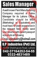 UP Industries Lahore Jobs 2019 For Sales Manager