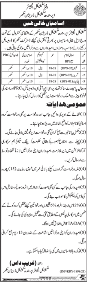 Upper Sindh Mechanical Division Jobs 2021 in Sukkur