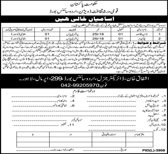 Urdu Science Board Jobs 2020 In Lahore