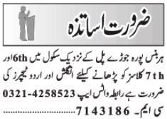 Urdu Teacher & English Teacher Jobs 2024 In Lahore