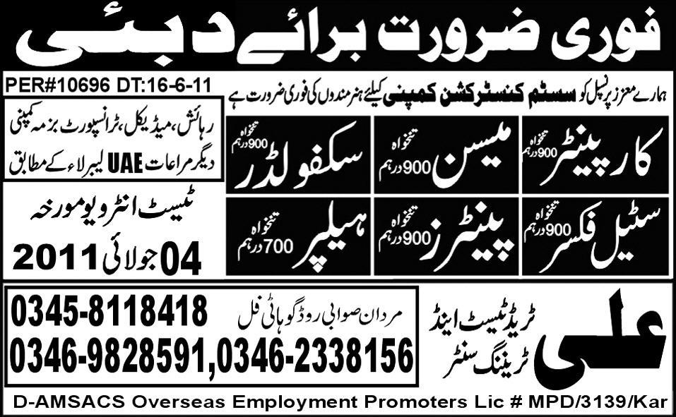 Apply as per details in job advertisement. Login to view further details of how to apply via https://www.jobz.pk online.