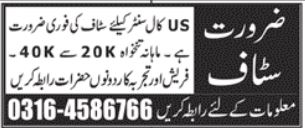 Call Center invites applications for job positions advertised in daily Jang dated 13 February 2022 for following vacancies in Rawalpindi Punjab Pakistan.