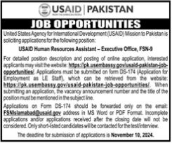 United States Agency for International Development USAID latest Private Human Resource jobs and others can be applied till 11 November 2024 or as per closing date in newspaper ad. Read complete ad online to know how to apply on latest United States Agency for International Development USAID job opportunities.