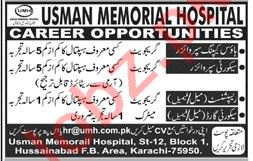 Latest Usman Memorial Hospital UMH Management Posts Karachi 2025