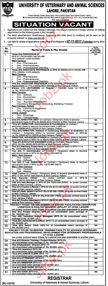 UVAS Jobs University Of Veterinary & Animal Sciences Lahore