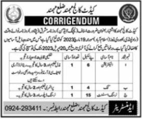 Vacancies in Cadet College Advertisement April 2023