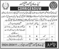 Cadet College Mohmand, mohmand Khyber Pakhtunkhwa KPK Pakistan invites applications from eligible candidates for the post of electrician, cook and nursing assistant as per advertisement of April 13, 2023 published in daily The News Newspaper. Persons with Intermediate, Others, Middle and Primary etc. education can apply.
