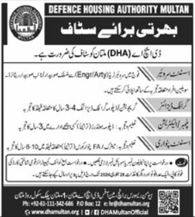 Defence Housing Authority DHA invites applications for job positions advertised in daily Khabrain dated 19 January 2024 for following vacancies in Multan, multan Punjab Pakistan.