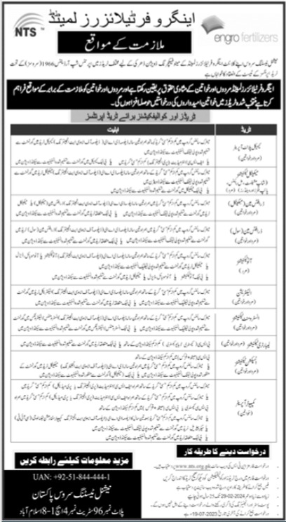 Vacancies Available at Engro Fertilizers Limited Via NTS