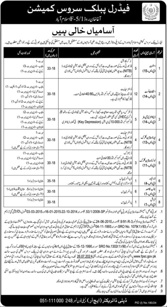 Vacancies in Federal Public Service Commission FPSC Advertisement July 2024