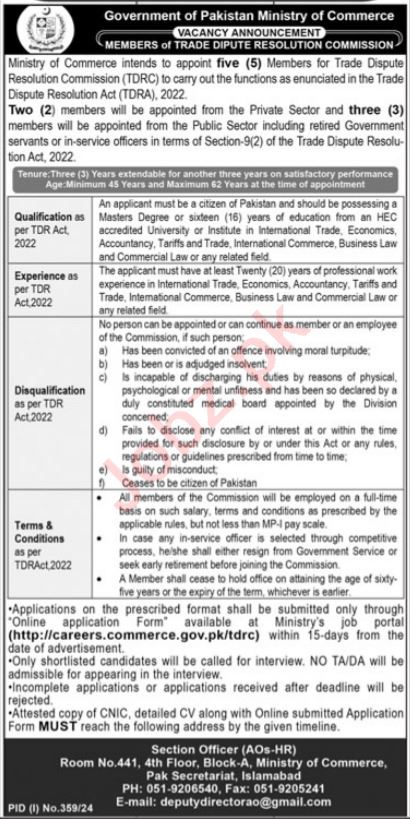 Ministry of Commerce jobs advertisement dated about 14 July 2024 in daily Jang Newspaper invites application for the vacant post of member in Islamabad, islamabad Islamabad Pakistan. Preferred Education is Master etc.