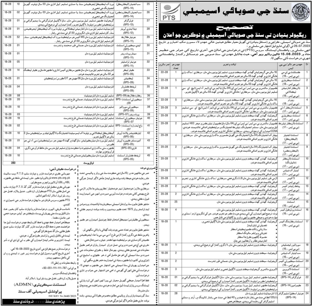 Vacancies Available at Provincial Assembly Sindh Through PTS