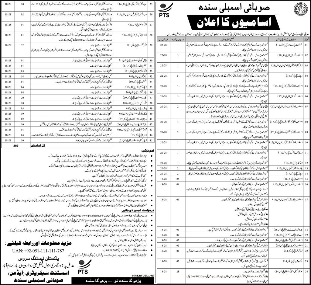 Vacancies Available at Provincial Assembly Sindh Via PTS