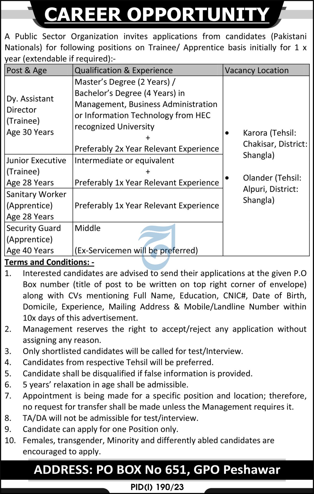 Latest Public Sector Organization Management Posts Peshawar 2025