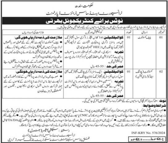 Latest Transport & Mass Transit Department Consultant Posts Karachi 2025