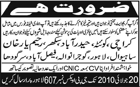 Apply as per details in job advertisement. Login to view further details of how to apply via https://www.jobz.pk online.