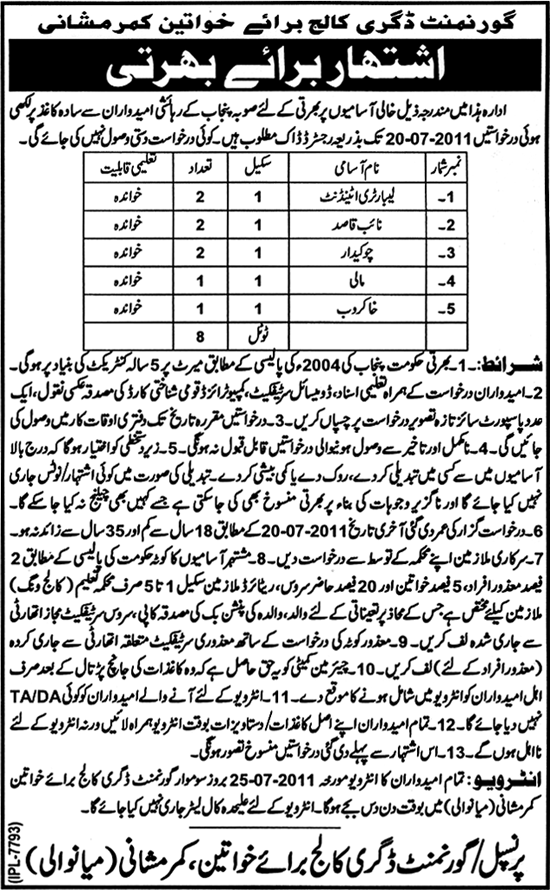 Vacancies In Govt Degree College For Women