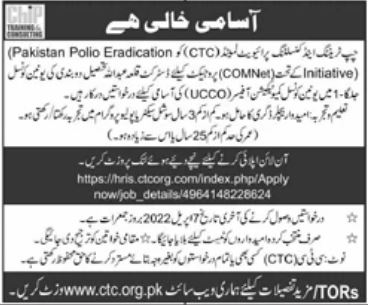 CHIP Training & Consulting Pvt Ltd is looking for candidates for following posts as per job advertisement published in daily Jang Newspaper of March 29, 2022 for location Killa Abdullah, killa abdullah Balochistan Pakistan: