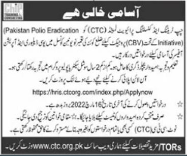 Vacancies in CHIP Training & Consulting Pvt Ltd Advertisement March 2022