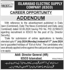 Islamabad Electric Supply Company IESCO invites applications for job positions advertised in daily Jang dated 25 June 2024 for following vacancies in Islamabad, islamabad Islamabad Pakistan.