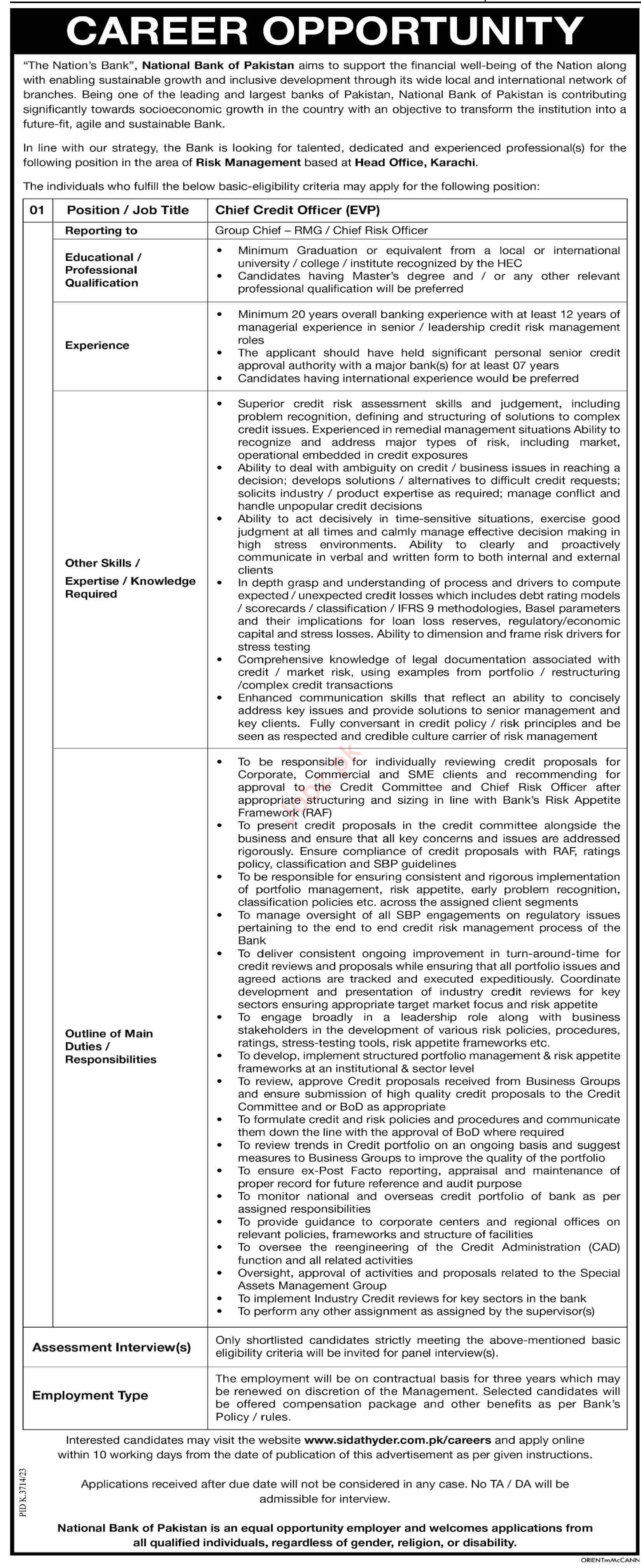 Vacancies in National Bank of Pakistan NBP Advertisement June 2024