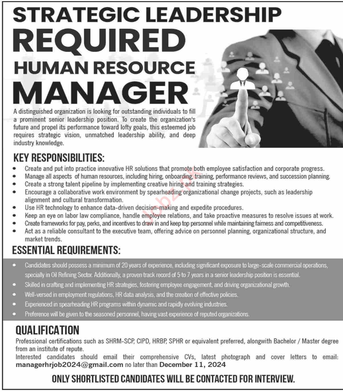 Private Organization jobs advertisement dated about 1 December 2024 in daily Dawn Newspaper invites application for the vacant post of human resource manager in Karachi, karachi Sindh Pakistan. Bachelor and Master etc. educational qualification will be preferred.