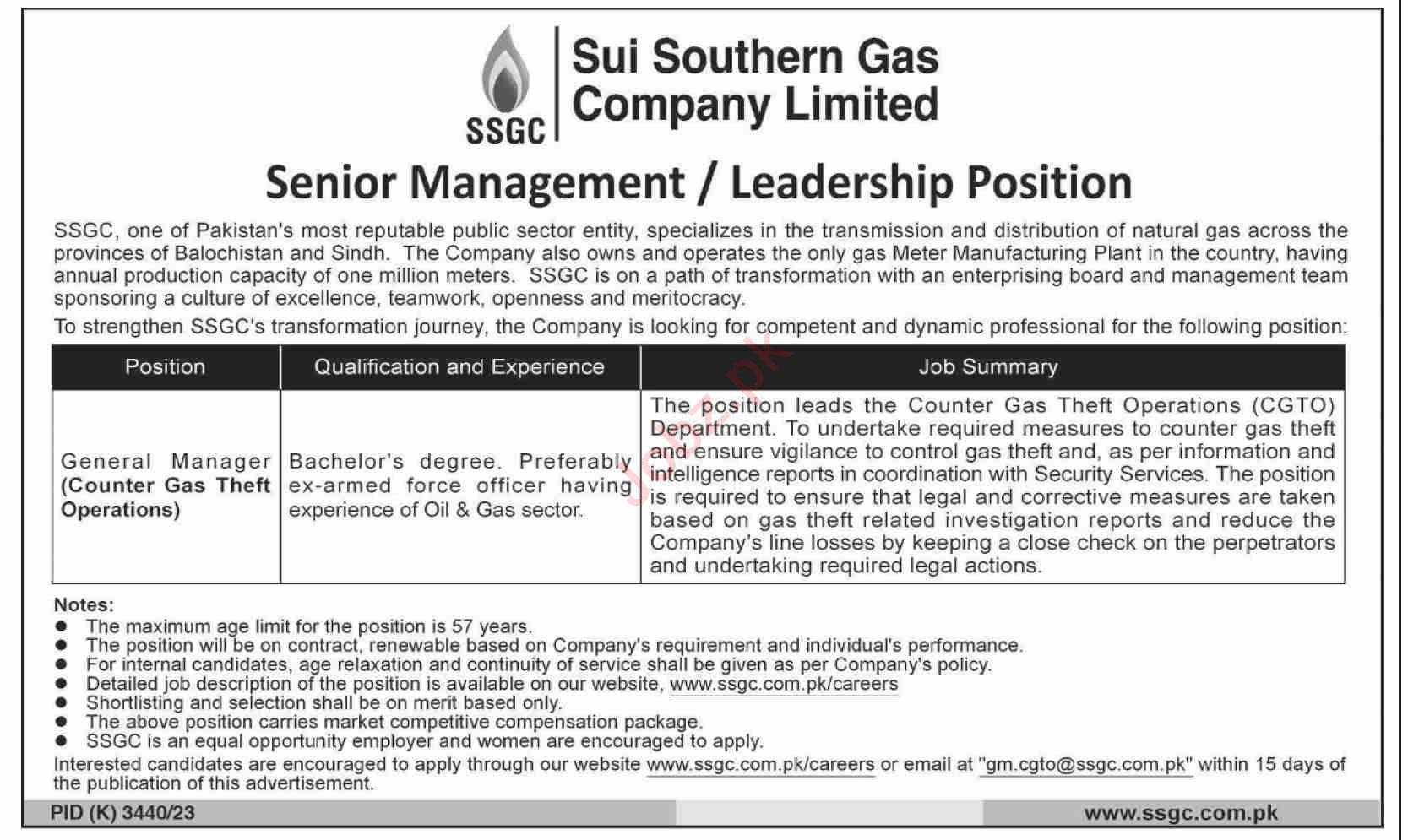 Latest Sui Southern Gas Company Limited SSGC Management Posts Karachi 2025