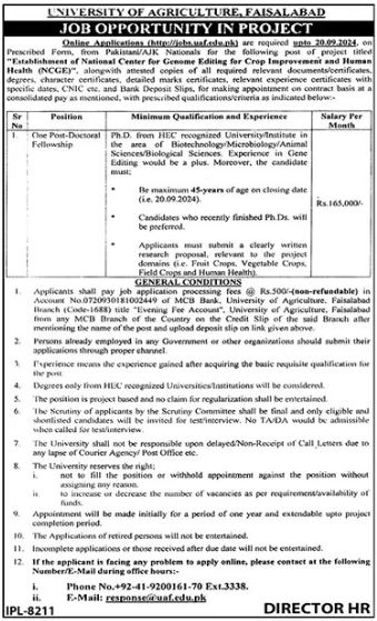 University of Agriculture UAF invites applications for job positions advertised in daily The News dated 31 August 2024 for following vacancies in Faisalabad, faisalabad Punjab Pakistan.