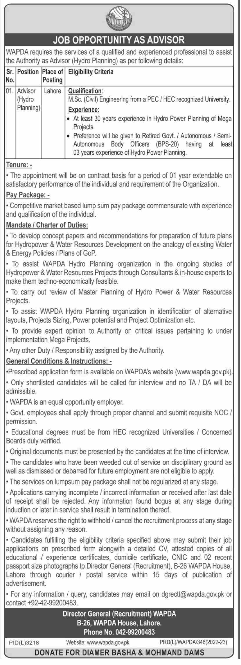 Vacancies in Water and Power Development Authority WAPDA Advertisement May 2023