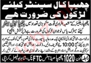Chhipa Call Center jobs advertisement dated about 27 April 2025 in daily Jang Newspaper invites application for the vacant post of male staff and matric pass boys in Shahrah-e-Faisal Karachi, karachi Sindh Pakistan. Educational qualifications required Matric etc.