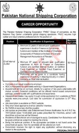 Latest Accounting jobs and others Government jobs in Pakistan National Shipping Corporation PNSC closing date is around May 7, 2024, see exact from ad. Read complete ad online to know how to apply on latest Pakistan National Shipping Corporation PNSC job opportunities.