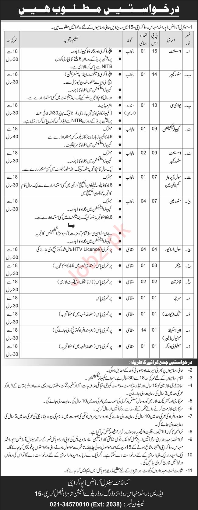 Vacant Positions At Central Ordnance Depot COD Karachi