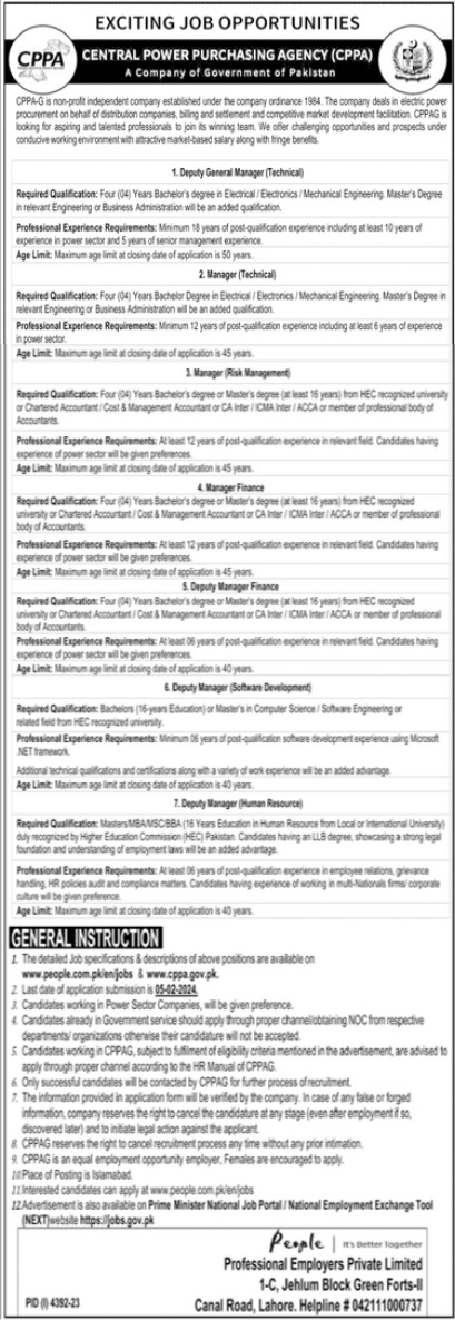 Latest Management jobs and others Government jobs in Central Power Purchasing Agency CPPA closing date is around February 5, 2024, see exact from ad. Read complete ad online to know how to apply on latest Central Power Purchasing Agency CPPA job opportunities.