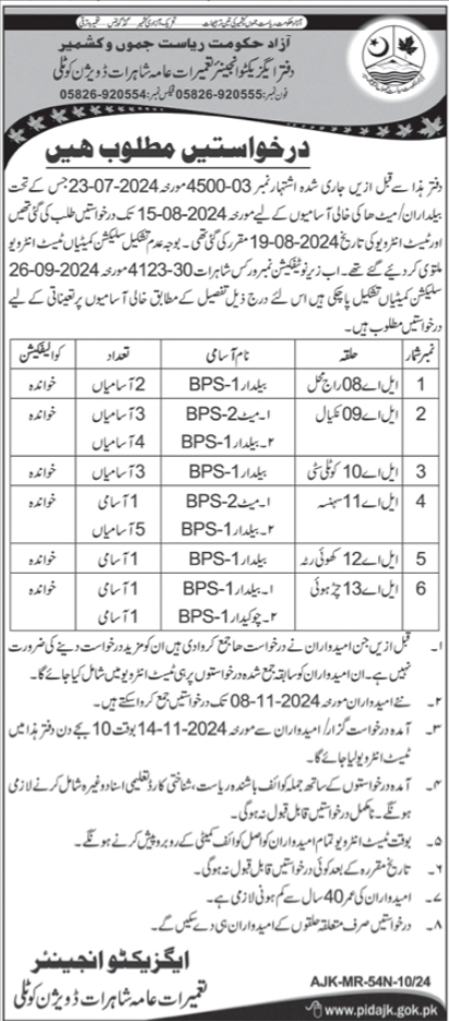 Communication and Works Department invites applications for job positions advertised in daily Ausaf dated 27 October 2024 for following vacancies in Kotli, kotli AJK Pakistan.