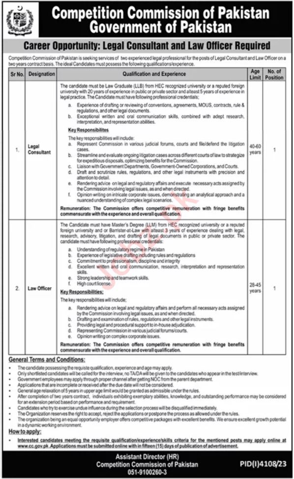 Competition Commission of Pakistan is looking for candidates for following posts as per job advertisement published in daily Dunya Newspaper of January 7, 2024 for location Islamabad, islamabad Islamabad Pakistan:
