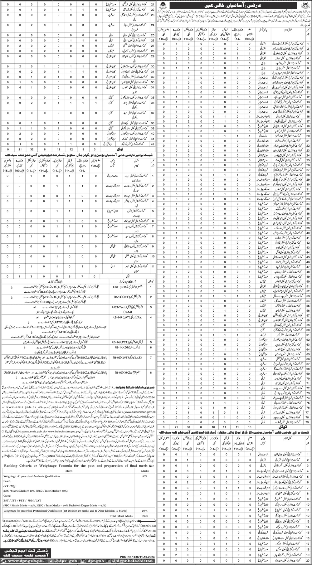 Education Department is looking for candidates for following posts as per job advertisement published in daily Jang Newspaper of October 12, 2024 for location Killa Saifullah, killa saifullah Balochistan Pakistan: