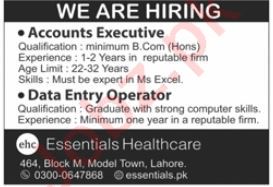 Essentials Healthcare EHC invites applications for job positions advertised in daily Jang dated 12 November 2023 for following vacancies in Lahore, lahore Punjab Pakistan.