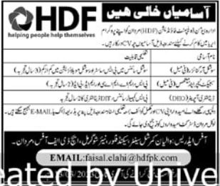 Vacant Positions at Human Development Foundation HDF
