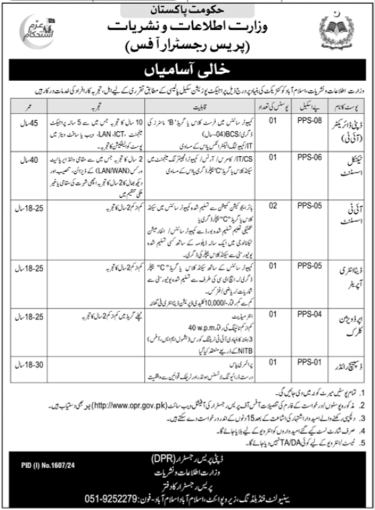 Ministry of Information and Broadcasting invites applications for job positions advertised in daily Jang dated 4 September 2024 for following vacancies in Islamabad, islamabad Islamabad Pakistan.