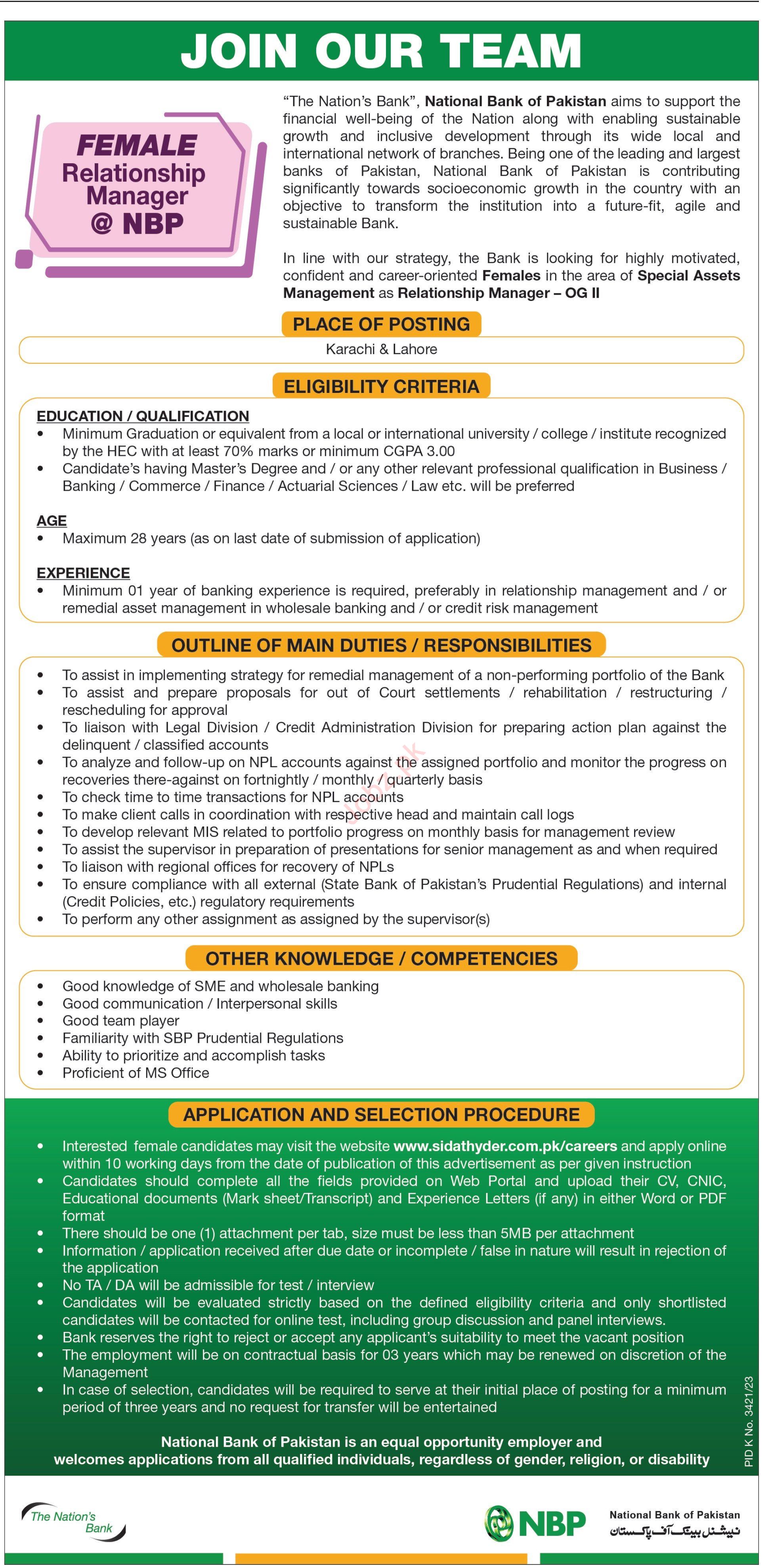 Vacancies in National Bank of Pakistan NBP Advertisement June 2024