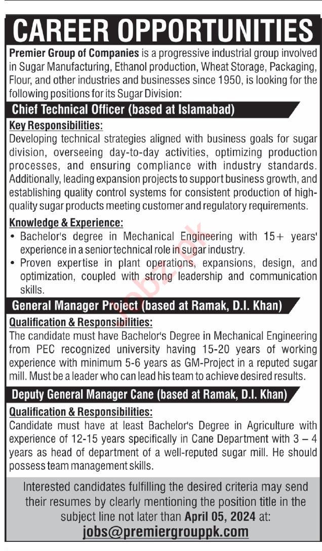 Premier Group of Companies latest Private Management jobs and others can be applied till 5 April 2024 or as per closing date in newspaper ad. Read complete ad online to know how to apply on latest Premier Group of Companies job opportunities.