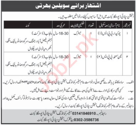 Vacant Positions at Station Supply Depot Mangla Cantt