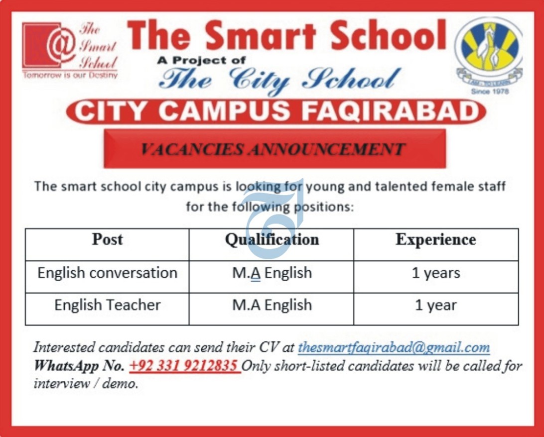 Vacancies in The Smart School Advertisement August 2024
