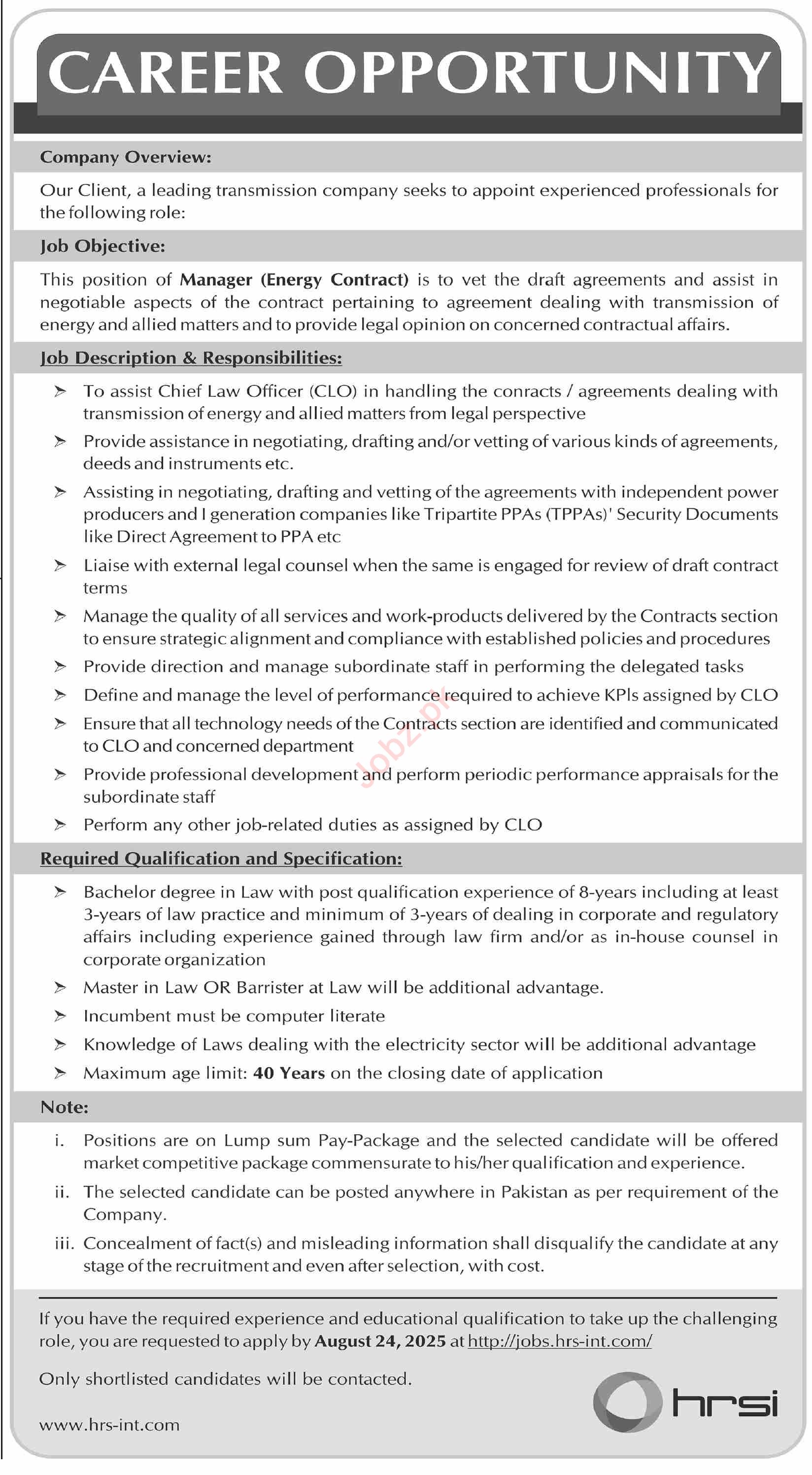 Latest Management jobs and others Private jobs in Human Resource Solutions International HRSI closing date is around August 24, 2025, see exact from ad. Read complete ad online to know how to apply on latest Human Resource Solutions International HRSI job opportunities.