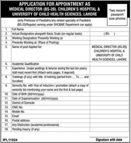 Specialized Healthcare & Medical Education Department Lahore, lahore Punjab Pakistan invites applications from eligible candidates for the post of medical director as per advertisement of December 22, 2023 published in daily Dunya Newspaper. Educational qualifications required MBBS and Others etc.