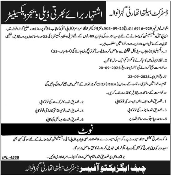 District Health Authority is looking for candidates for following posts as per job advertisement published in daily Khabrain Newspaper of September 13, 2025 for location Gujranwala, gujranwala Punjab Pakistan: